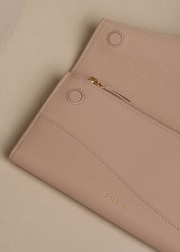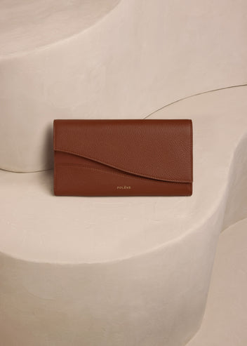 Questo modello valorizza l’arte della piega grazie alla sua pelle martellata. Un taglio agli angoli rivela la pelle liscia, creando un raffinato gioco di texture. Sotto la patta, impreziosita da una chiusura incisa, l’interno è spazioso e ben organizzato. Grazie alla tracolla regolabile, fissata con moschettoni, il modello segue con fluidità ogni movimento.